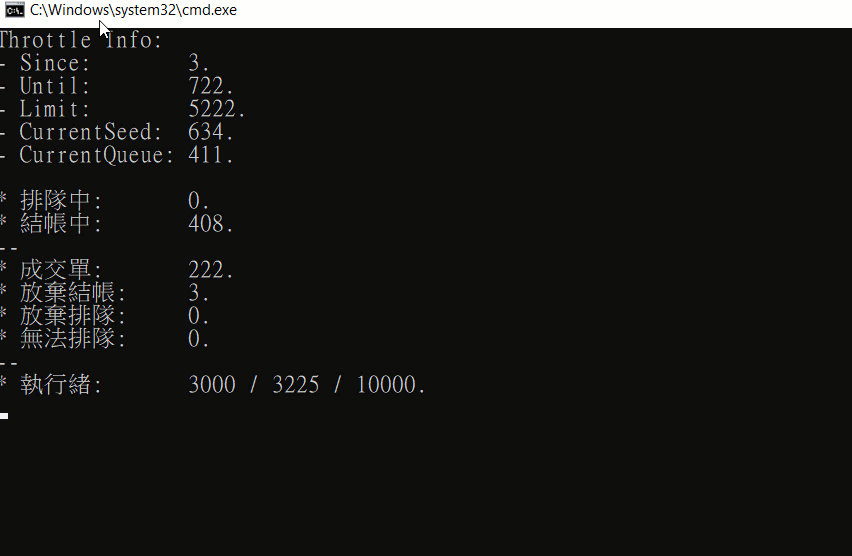 之後 (在 thread 內部)。想了想,我是為了程式順利執行下去才這樣做的,加上為了統計我本來就有 count, 因此簡單設個 SpinWait