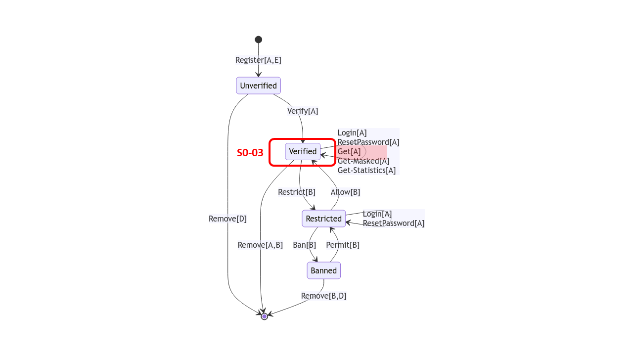 購買商品後,銷售系統會呼叫 API: Get 取得會員資訊。從狀態機上面可以看到,起始狀態: verified, 允許執行 Get 這個 action,這個步驟驗證通過