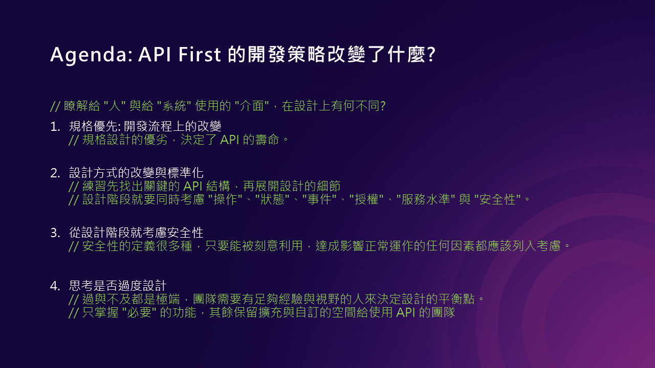 - API First #1 架構師觀點 - API First 的開發策略 - 觀念篇; 2022/10/26