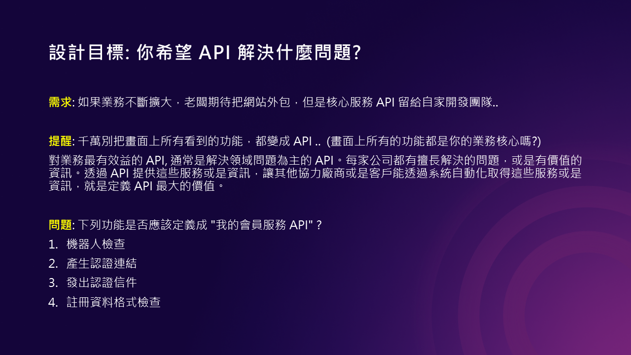 最近這陣子,我對外分享的主題,其實都集中在 “API First” 身上。碰到一些朋友給我的 feedback, 我覺得挺有趣,我挑一個,放在這篇實做篇的最前面: