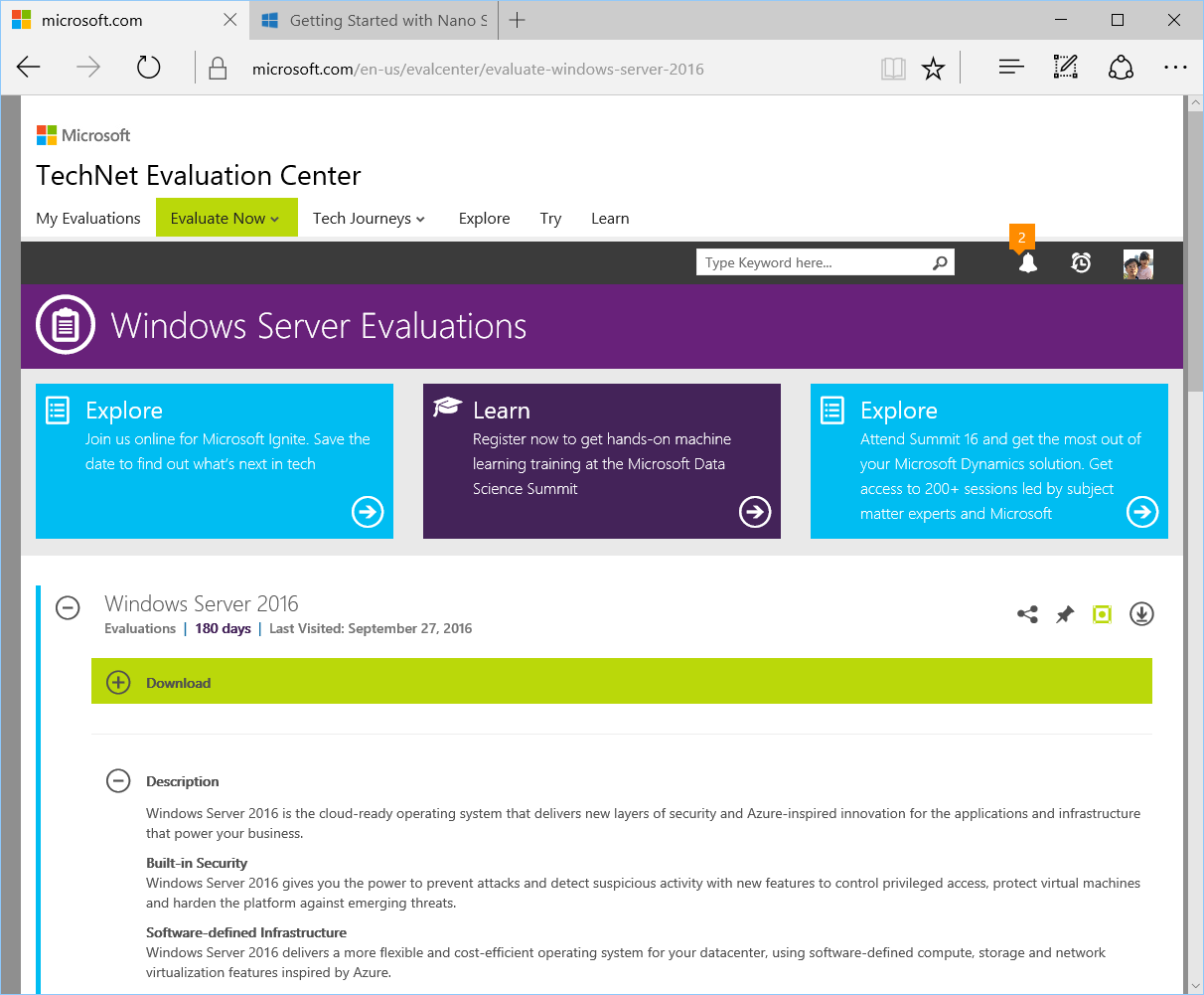 本想趁颱風天想試一下熱騰騰的 windows server 2016 .. 沒想到在虛擬世界要外出也是困難重重啊,MSDN subscriber download 還沒得下載,只好先抓 Evaluation ..