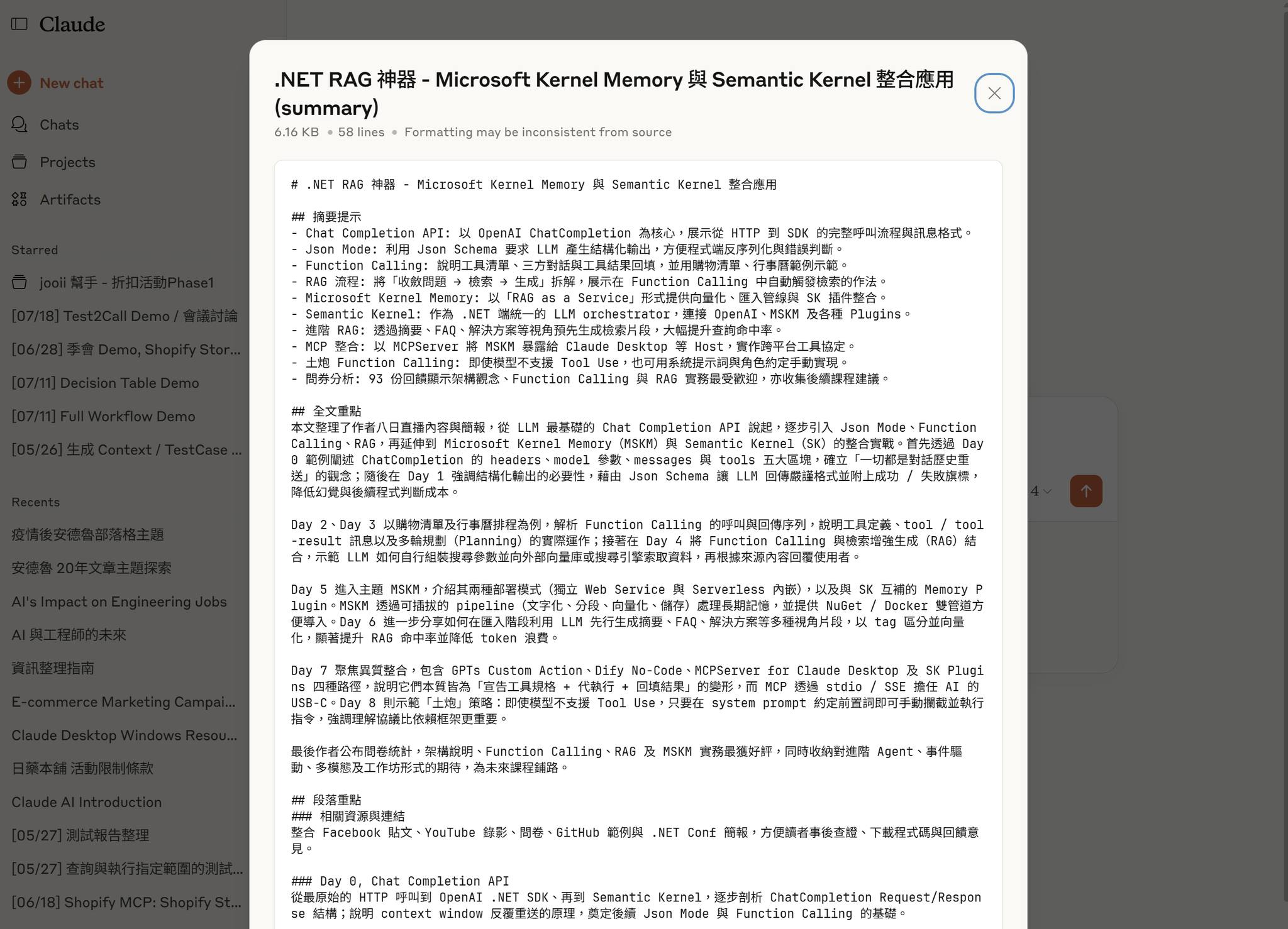 接下來,我就逐一介紹 Resources 的功能, 然後一一戳一下支援程度好了 XDDD, MCP 定義了三種主要的服務類型是有原因的, 分別是 Prompts, Resources, Tools .. 想像一下你在用 AI 聊天都在做甚麼? 第一, 你要學會怎麼下 Prompt, AI 回應才會有效率。再來, 要告訴 AI 的事情多了,你開始會想上傳檔案給他看, 再來 AI 越來越強,你希望它代替你做更多事情,你開始會啟用一些 tools (例如 web search .. ), 授權給 AI 讓他直接用你的 tools 幫你做事